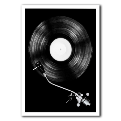 Black and White Vinyl Record Canvas Poster